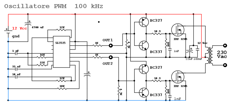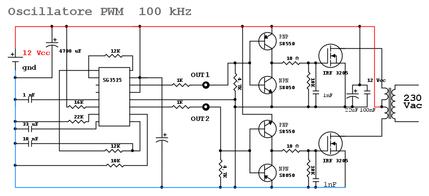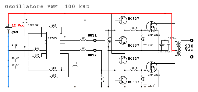 Progetto PWM SG3525A 100 kHz per Inverter DC/AC 12/230