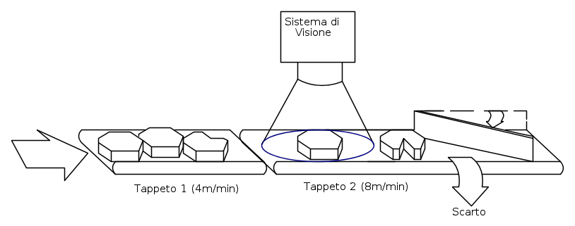 - quantità dei pezzi da scartare nel tempo e quindi velocità che dovrà avere il sistema;