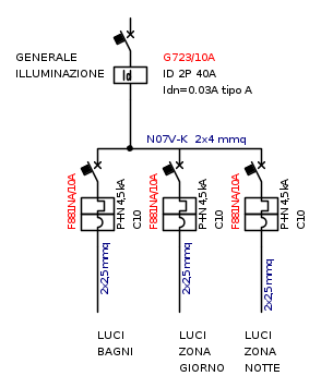 Io se possibile, non terrei tutte le luci sotto un unico differenziale; si finirebbe in caso di guasto, di rimanere completamente al buio.