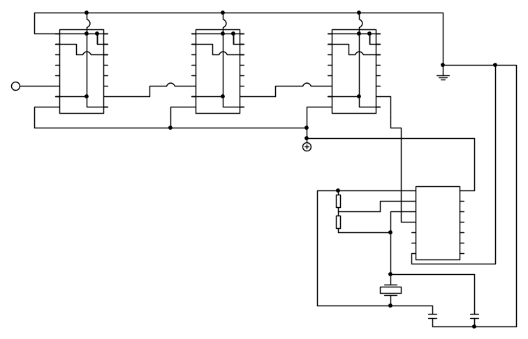 però mi manca la parte dell' SN7404 che non riesco a capire come sono collegati i componenti e i piedini...