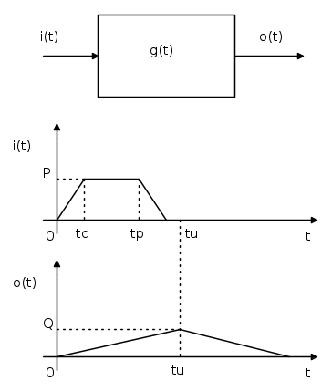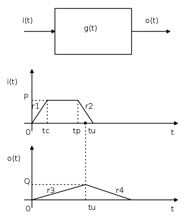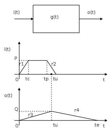 La funzione in ingresso ( trapezio ) è esprimibile nel dominio del tempo come segue :