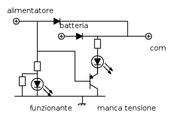 Sto costruendo un mini UPS per il mio router, e volevo mettere due led per indicare se c'è corrente proveniente dal trasformatore o dalla batteria. Il led per indicare l'uso del trasformatore è semplicemente collegato in entrata con una resistenza, mentre un altro led, che si accende quando manca la corrente dal trasformatore, viene attivato da un relè. Volevo sapere se esiste un semplice circuito per attivare questo led, senza l'uso del relè.