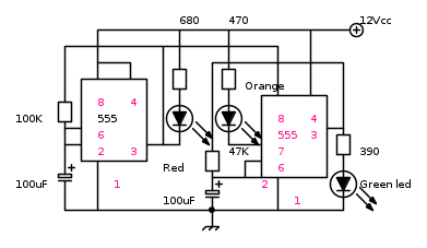 , dove n sono i bit di uscita che usi per il contatore "riduttore" 4040, e l'uscita la mandi al 4017 che per 4 colpi di clock fara' accendere il verde, per 2 colpi di clock l'arancio e per altri 4 il rosso.I numeri li ho messi come esempio, tutto è adattabile a quello che vuoi fare (come tempistica) tenendo conto che puoi distribuire, con un 4017, solo in frazioni di 10 il tempo di ogni luce rispetto al tempo totale del ciclo.