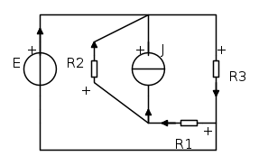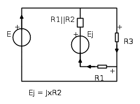 dove al generatore di corrente in parallelo con la resistenza R_{2} associano un generatore di tensione, di tensione J\times R_{2} in serie con R_{2} .