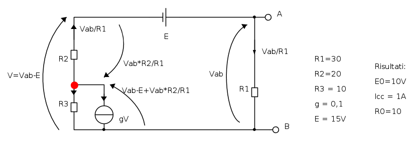 La resistenza equivalente è quindi uguale alla tensione a circuito aperto diviso la corrente di cortocircuito: