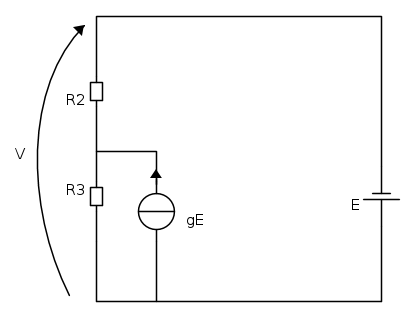 Dove ho girato il segno del generatore di corrente poiché V ed E hanno segno discorde.
