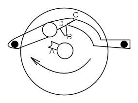 Ruotando, in senso orario, il perno centrale del potenziometro la "linguetta", denominata con la lettera "A", andrà, alla fine dell' escursione, ad azionare l' altra "linguetta", denominata "B", la quale solleverà la leva "D"; in questo modo si apre il contatto denominato "C".