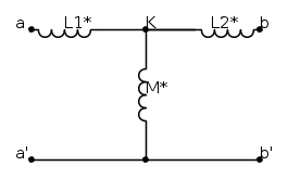 sono entrambi opposti; a mio parere però, se gli induttori sono in serie non serviva trasformare nella rete s "T", che porta solo ad un ramo inutilizzato, ma bastava sottrarre le tensioni v1-v2 (ricordando che i2=-i1) per ricavare il coefficiente di autoinduzione complessivo della serie.