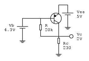 . Stai pilotando a tensione fissa la base e l'emettitore. La corrente di collettore puo` essere qualunque. Non e` che per caso lo schema e il testo del problema sono un po' diversi?