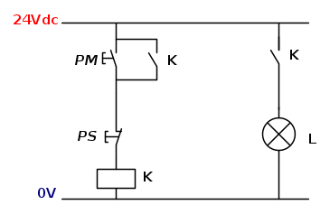 considerando il relè che hai citato e quindi il suo valore di tensione di alimentazione di 24 V in continua,lo schema è il seguente ovviamente anche la lampada dovrà avere un valore di tensione nominale di 24 Vdc: