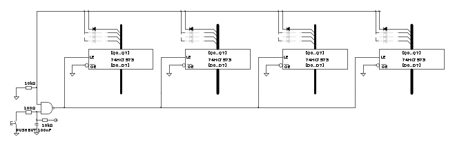 In questo schema faccio uso di 4 circuiti integrati tipo 74HCT573, di cui qui trovi il datasheet.