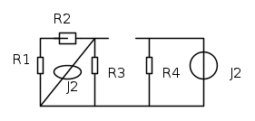 R4 e' in serie al generatore di corrente J2 ha pertanto la stessa intensità di corrente.