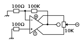 In questo modo ti ritrovo in uscita tutti gli squilibri amplificati: teoricamente in quel modo l'uascita deve essere nulla, aggiusta il trimmer fino a che l'uscita sia nulla anche nella realtà.