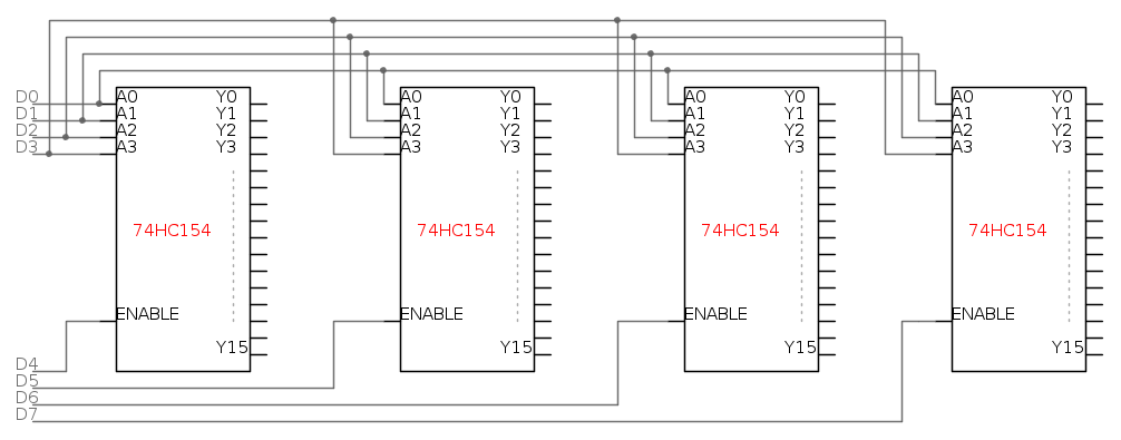 Così avrò 8 ingressi di selezione e 16*4 uscite.