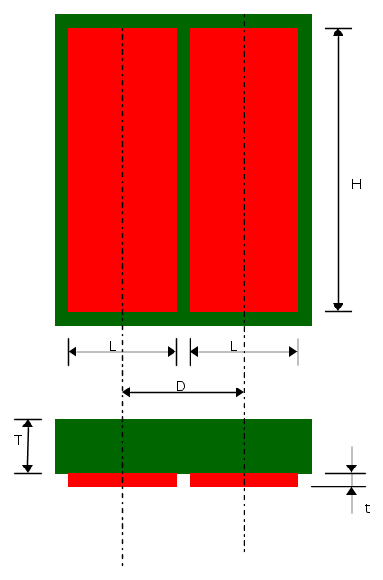 In pratica, per me, se devo calcolare la superficie che si affaccia non si deve usare la larghezza della pista di rame (i 2mm) ma si devono moltiplicare i 35μm dello spessore per la lunghezza, infatti è questa la superficie della parte che si affaccia l'una all'altra