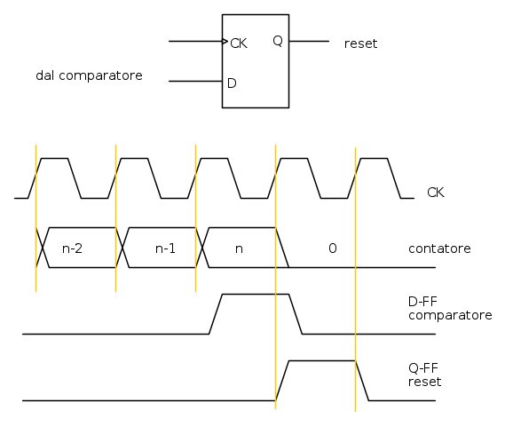 comparatore vero => reset asserito => dato a zero => comparatore falso