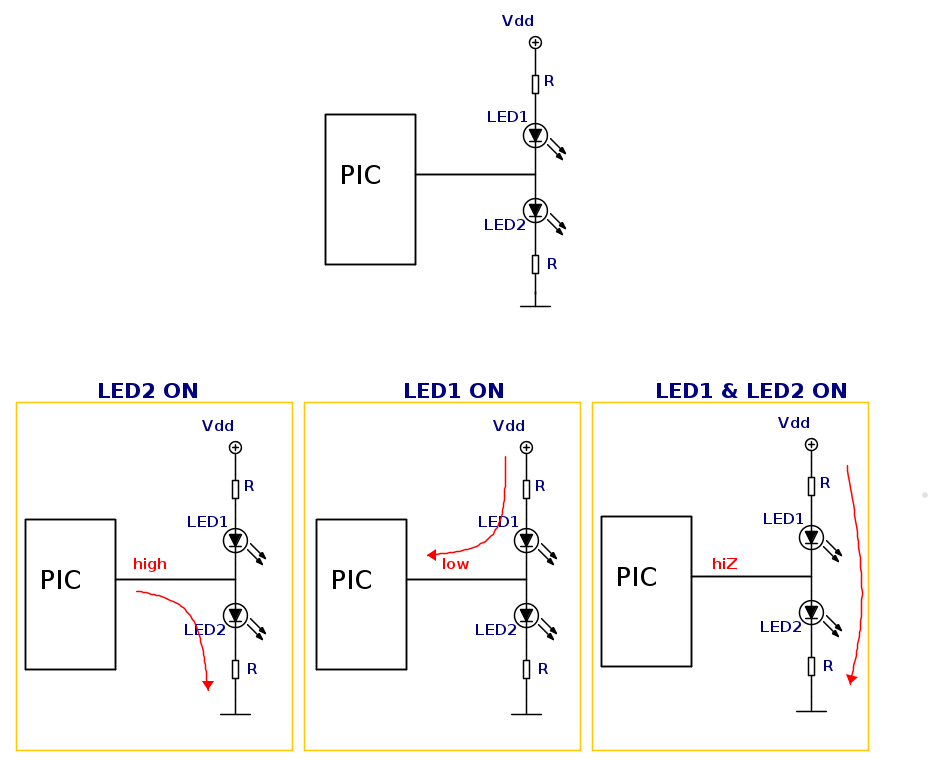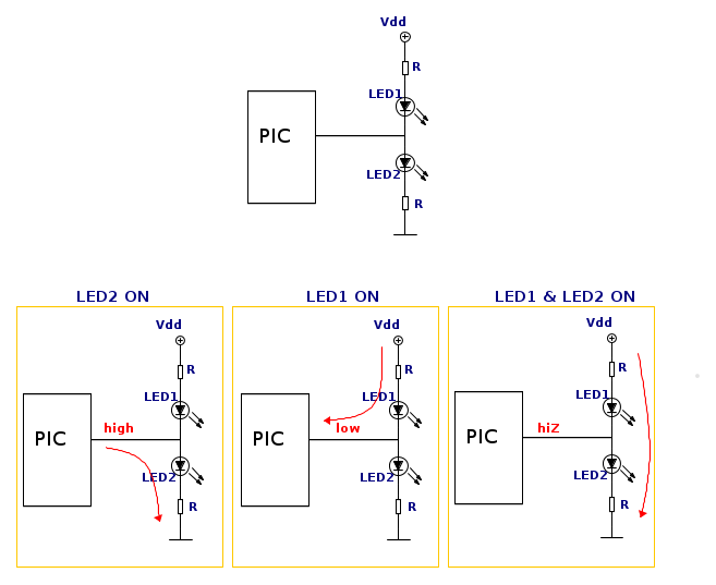 è possibile secondo voi ottenere questo effetto con un'uscita PIC di tipo 3-state?