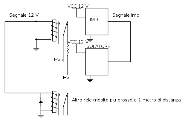 Il problema è che quando il relè di scarica ( che è di tipo NC) viene eccitato l'isolatore dell'imd (che è un semplicissimo flip flop con 555) scatta.