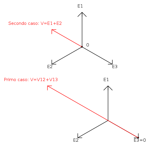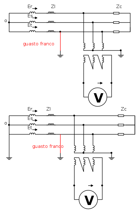 RenzoDF ha scritto:Nel primo caso la terra viene ad coincidere con la terza fase, annullando la tensione sulla terza fase del TV e portando le rimanenti due ad essere sottoposte alla tensioni V13 e alla V23 senza perturbare il regime del sistema, no?