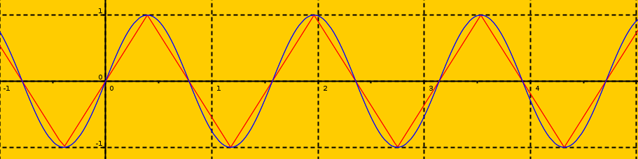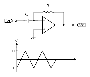 per un ingresso ad onda triangolare di 100 Hz e valore di picco 1 V ,come quello di figura?