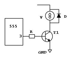 dovrai solo mettere un transistor sull'uscita per evitare di rompere il 555 che piu' di 200mA non riesce ad erogarli