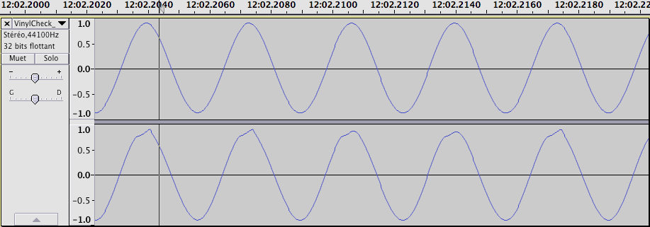 In pratica, anche se cambio l'antiskating non vedo molta differenza, un canale distorce sempre prima dell'altro. La distorsione si vede bene anche con Audacity: