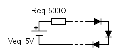 . Ora che si ha il modello del diodo, di cerca l'equivalente Thevenin di tutto quello che c'e` fuori dai diodi, compresa la resistenza di carico, e si ha la parte sinistra di questo schema, cui si collegano i tre diodi (parte destra del disegno) che sono caratterizzati da un modello esponenziale con
