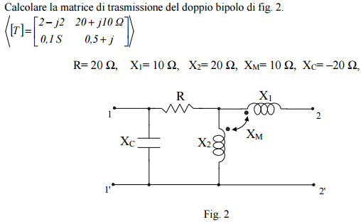 ho questo esercizio un cui mi viene richiesto di trovare la matrice di Trasmissione (Diretta) del doppio bipolo in figura.