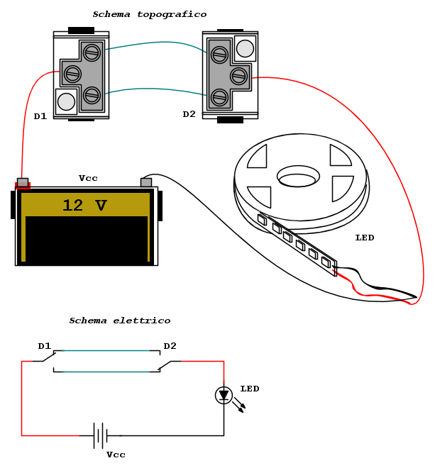 volendo accendere una barra a led da due o piu punti , come dovrei fare i collegamenti o il circuito???