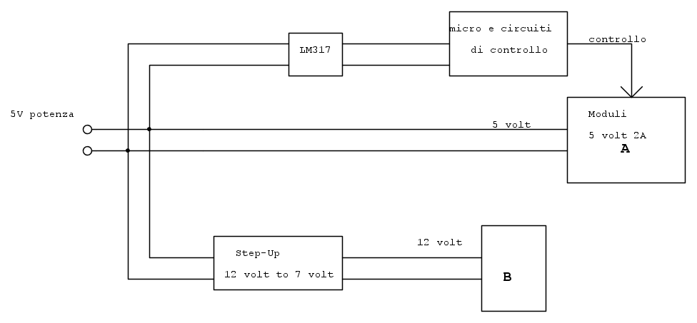 Mi chiedo questo perché, generalmente ho sempre utilizzato lo schema (inverso) in cui alimentavo tutto con un alimentatore superiore alla massima tensione necessaria (12 volt) e quindi abbassavo la tensione per il circuito di controllo (5volt), tramite un classico LM317.