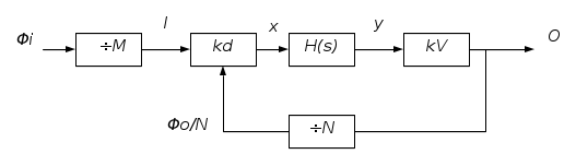 \phi _{o}\left( s \right)=\left( \frac{k_{v}k_{p}H\left( s \right)}{s+\frac{k_{v}k_{p}H\left( s \right)}{N}} \right)\phi _{i}\left( s \right)