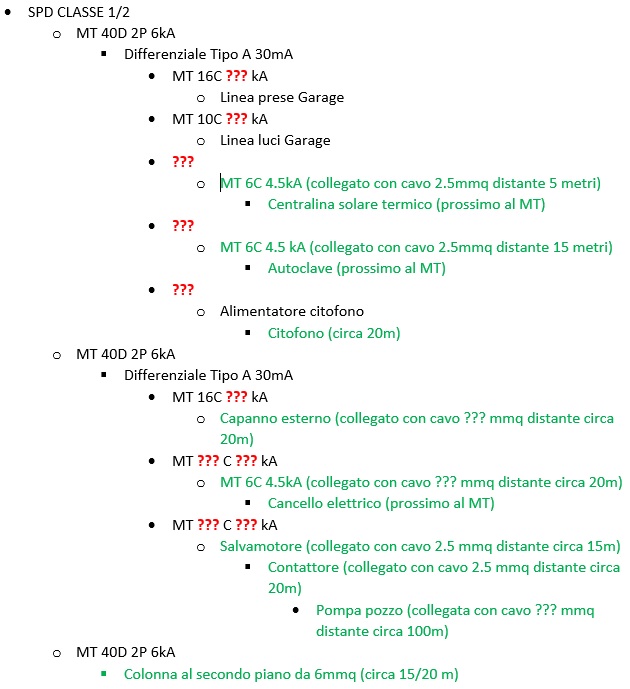 Hai ragione dovrei disegnare uno schema col software ma sono a cortissimo di tempo e non ho modo adesso di imparare ad utilizzarlo, faccio prima a disegnare tutto a mano, i MT in curva D li avevo previsti per evitare che scattino a causa di qualche corto localizzato a valle, comunque la lista era un po' sbagliata, eccola corretta...
