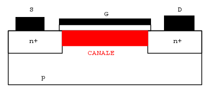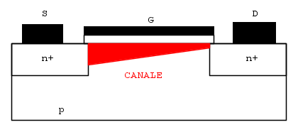 Per tensione V_{DS} nulla, la tensione che applichi al gate crea un canale uniforme nel dispositivo: