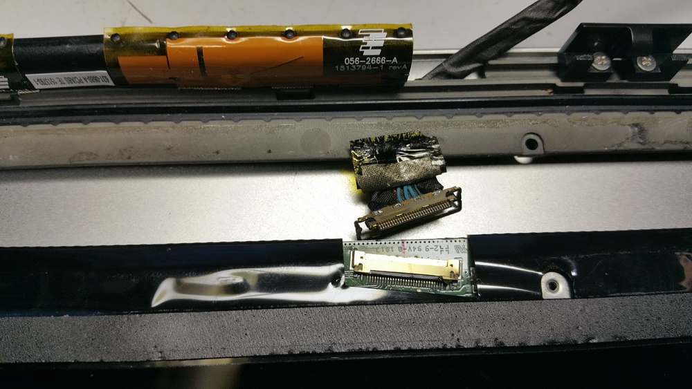 Mi trovo a dover testare due pannelli Lcd di due notebook della Apple , uno un MacbookPro , l’altro un Air , il modello poco conta visto che si tratta di due pannelli simili con attacco a 30Pin , si attacco a 30pin ma Apple quindi niente connettori eDP standard per la mia misera attrezzatura.(in foto)