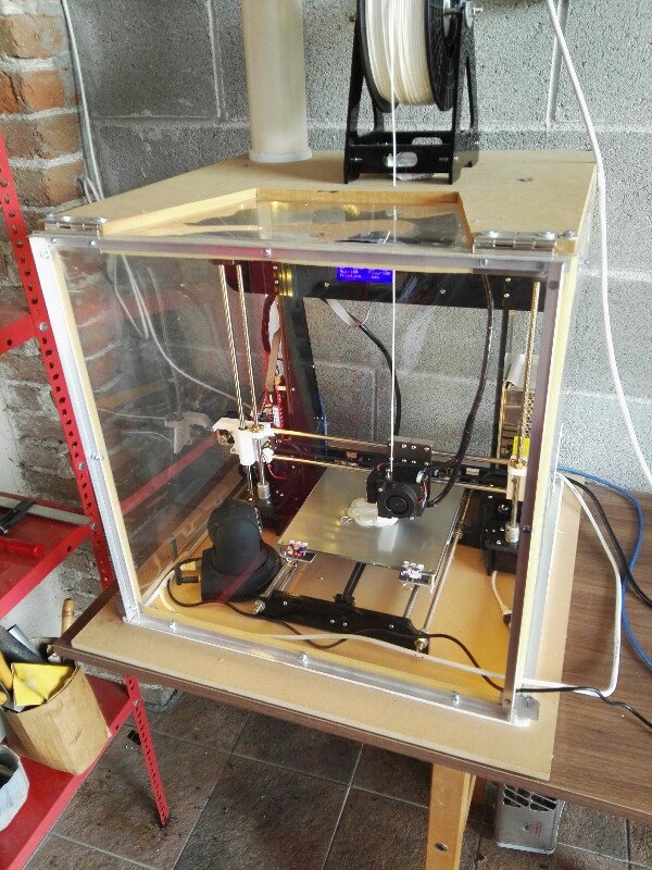 ho costruito un box trasparente per racchiudere la mia stampante 3d, che potete vedere qui di seguito.