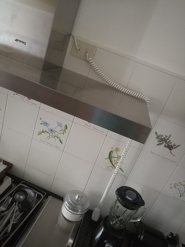 Normative a parte, per maggior "sicurezza" personalmente provvederei a qualche riparo (magari semplicemente feltrini o gommino autoadesivo o spezzone di tubicino flessibile plastico o simili) per evitare che durante l'utilizzo la prolunga spiralata strusci direttamente sullo spigolo (anche se non è vivo ne affilato) della cappa.