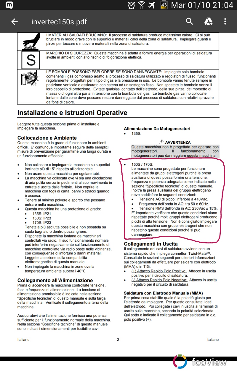Ragazzi, appena riesco faccio una foto migliore. Senz'altro credo che la saldatrice possa essere utilizzata con generatori.
