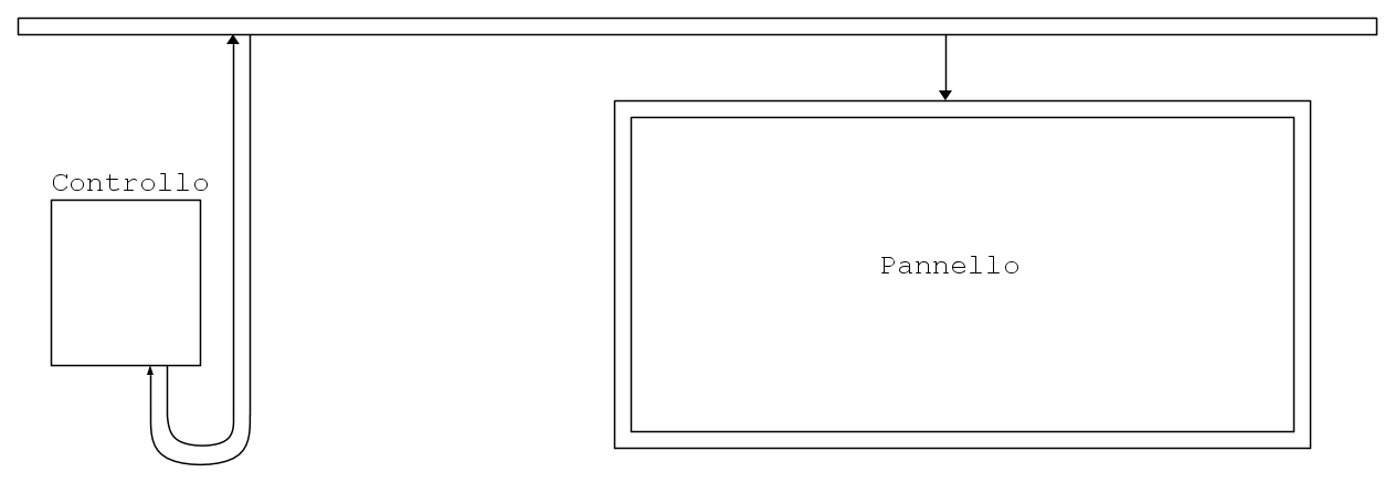 In breve, abbiamo un computer nel quadro elettrico (arduino + raspberry pi) che controlla una serie di catene LED installate in un pannello 20/30 metri dal quadro.