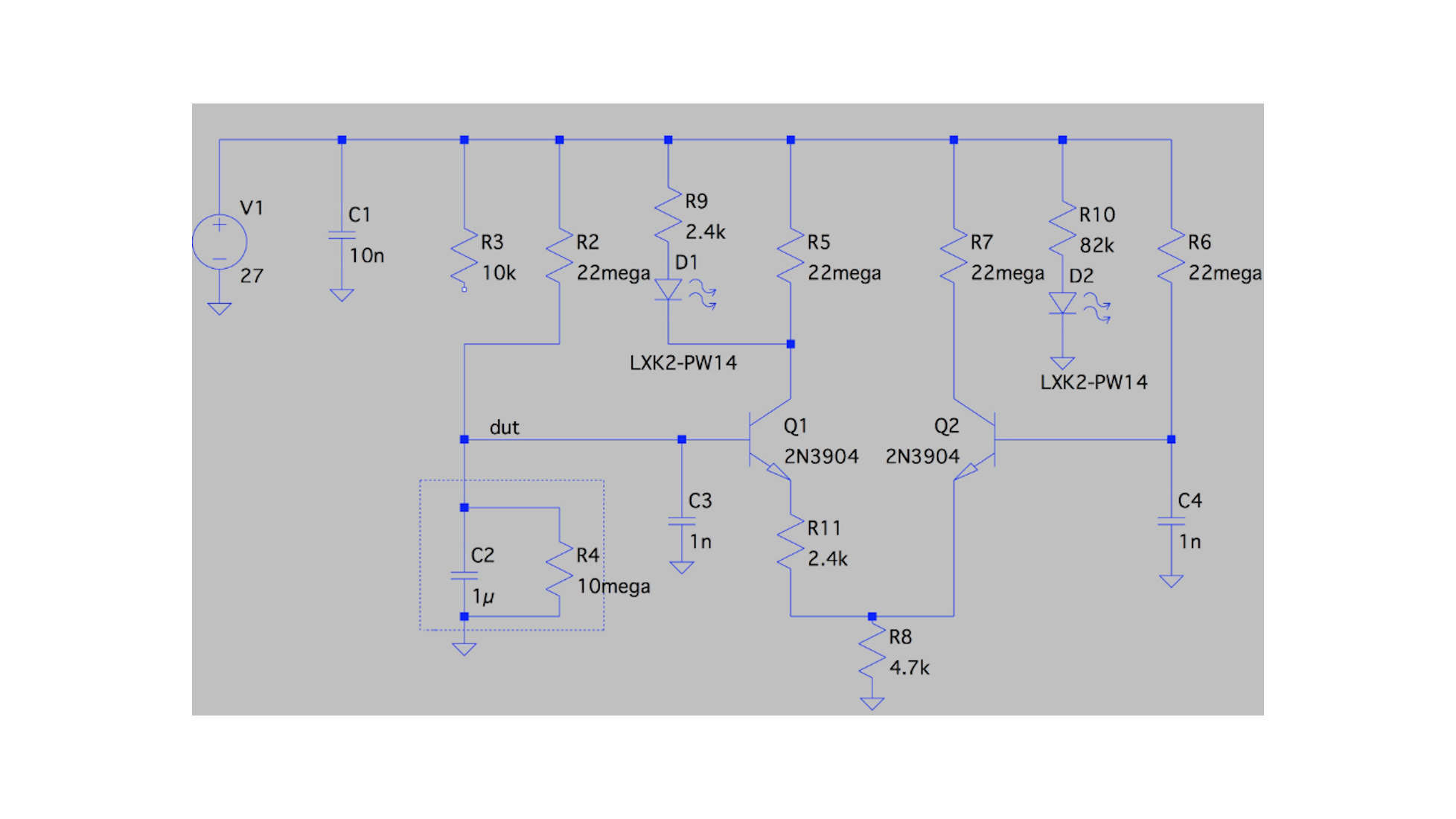 Se ho capito bene legge l'eventuale corrente di dispersione,che scorre nel condensatore di prova se ad esempio scorre 5uA(microAmpere)si attiva il Led rosso,mentre se scorre una corrente superiore a 5uA si attiva il Led verde.