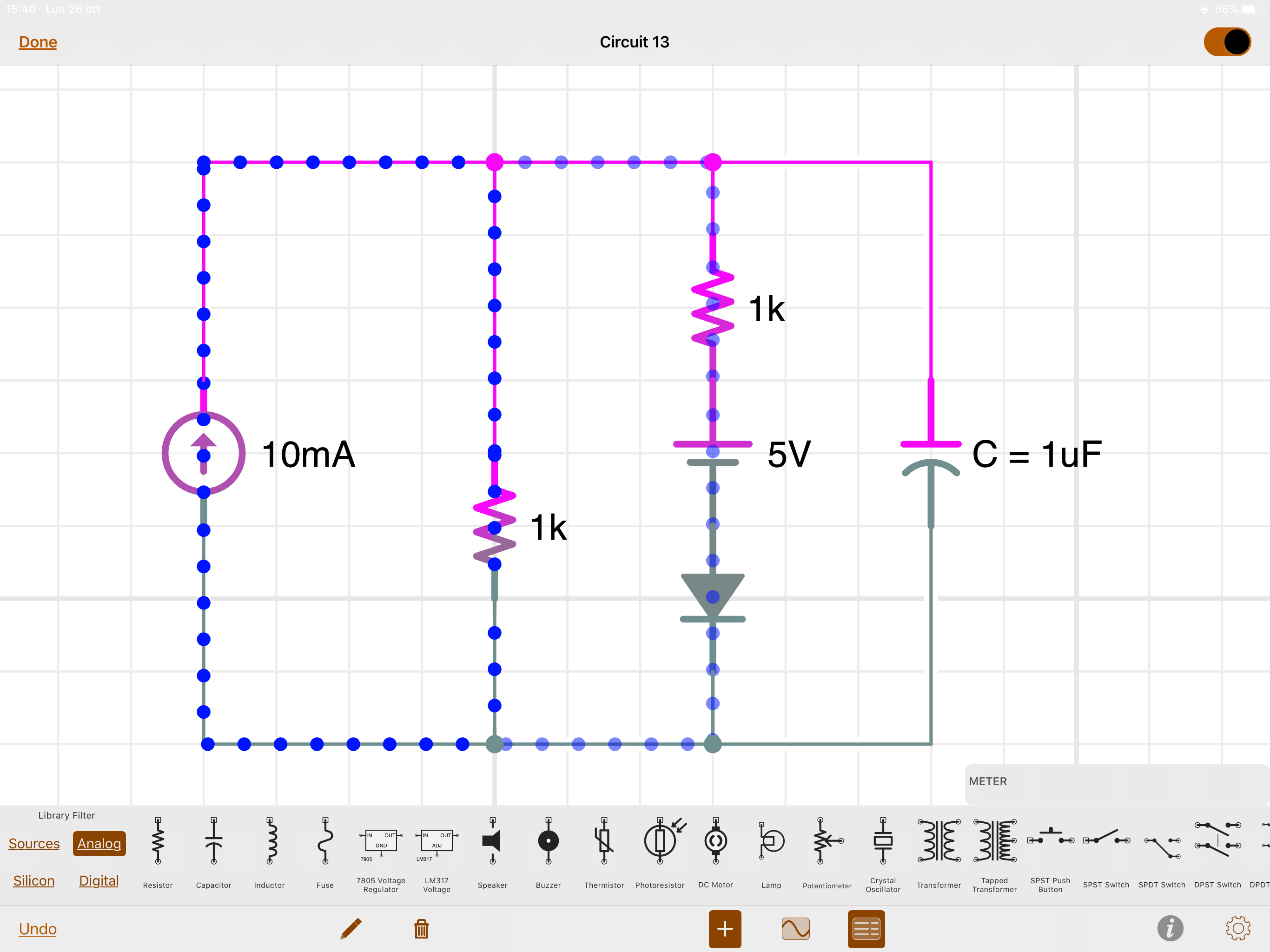 ho da risolvere un esercizio legato al circuito mostrato:debbo scrivere la formula della tensione del condensatore durante il transitorio. il diodo è un diodo ideale: i restanti componenti sono lineari.