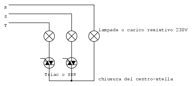 io non lo so perché non esistono SSR proporzionali, però voglio indicarti un sistema semplice e funzionale per chiudere il centrostella e permetterti di risparmiare un SSR , usandone soltanto due.