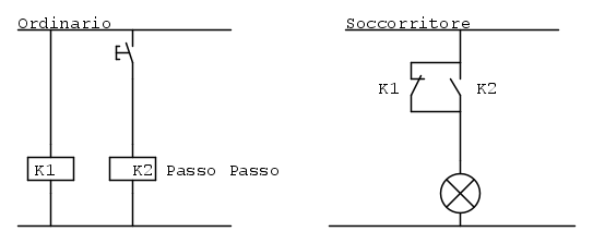 nello specifico, in ordinario le accendo con pulsante e relè passo passo ma come faccio lo switch in emergenza in caso di mancanza di tensione?