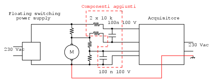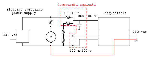 Il motore viene alimentato con un alimentatore da 12-15V, esterno all'acquisitore e che non ha riferimenti di terra con esso.
