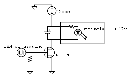vorrei costruire un circuito pilotato da Arduino, che tiri fuori una PWM la quale apre e chiude un Fet regolando l' intensità di luce di una striscia a LED.