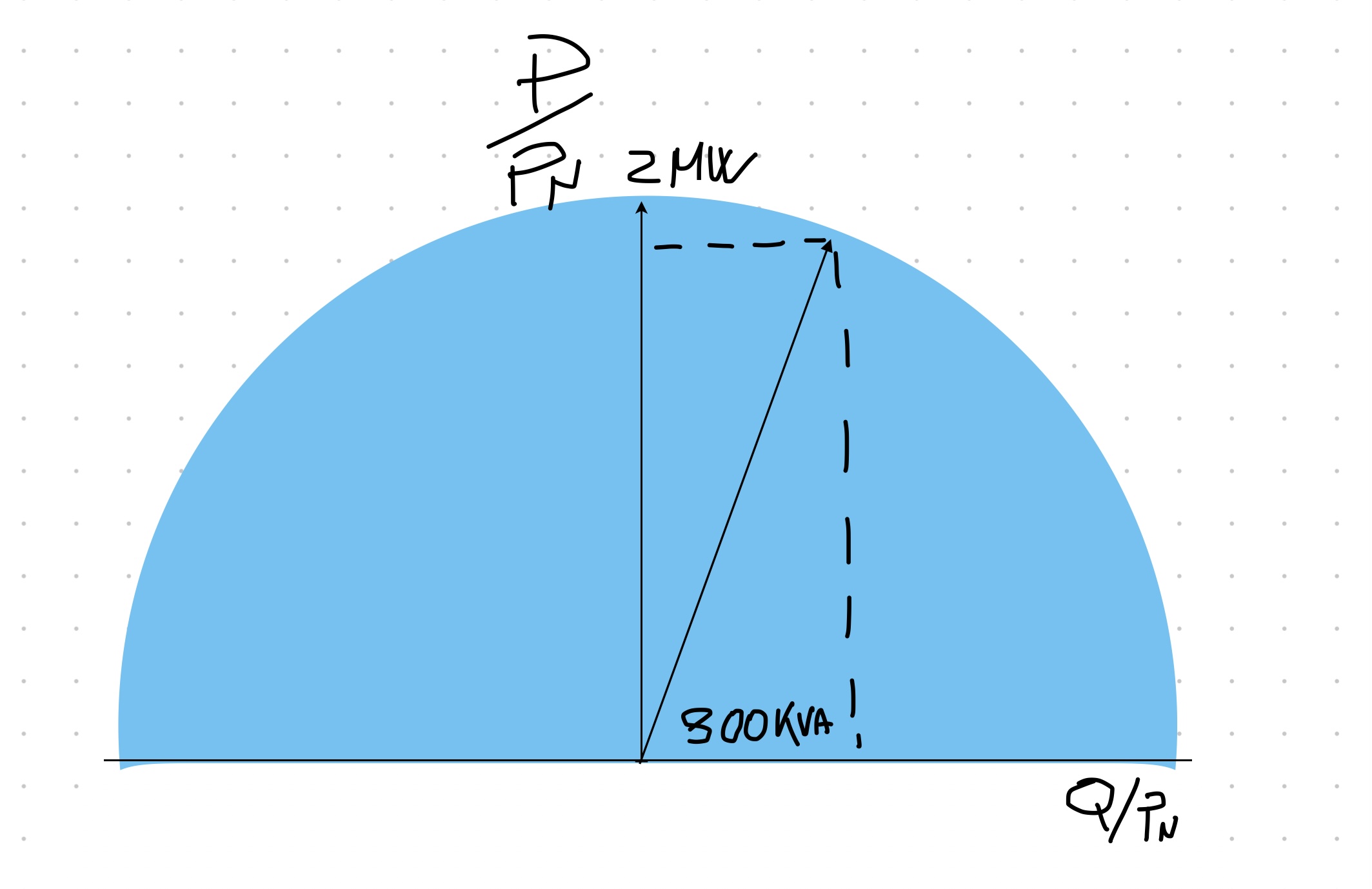 - 1. se immetto nel PDC la potenza nominale 2MW, non posso garantire la regolazione di reattivo mantenendo la potenza attiva al valore fisso di 2MW (dovrei calarla, la potenza apparente è pari a 2MVA)