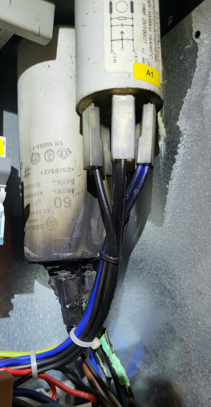 Il condensatore (della seconda foto dietro al filtro emi) mi sembra messo molto male probabilmente i connettori o i morsetti e i cablaggi sono tutti da rifare.