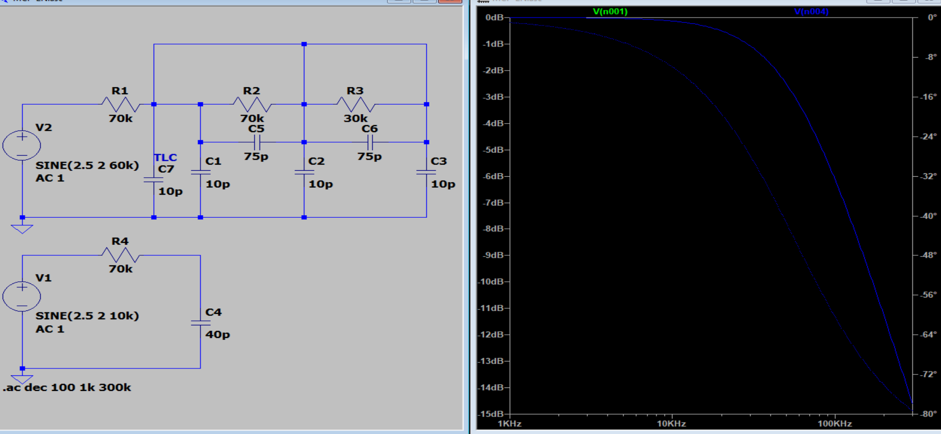 Con quella configurazione NON ho un passa basso, ma il diagramma fatto con spice (Giallo dopo R1), mentre quello che ho io è quello Blu (su R1 levando i C da 75 pF - Bode Allegato post 3).