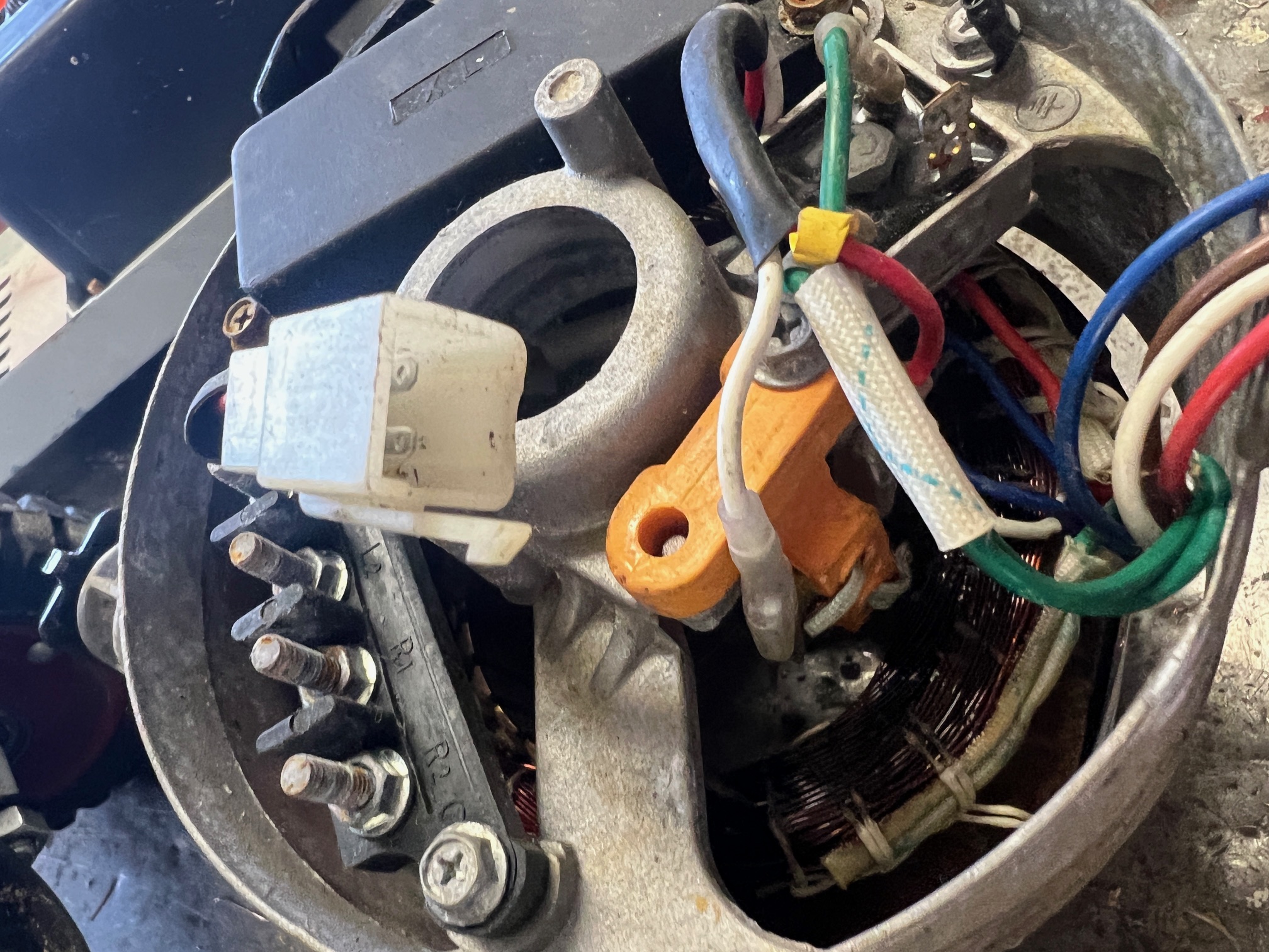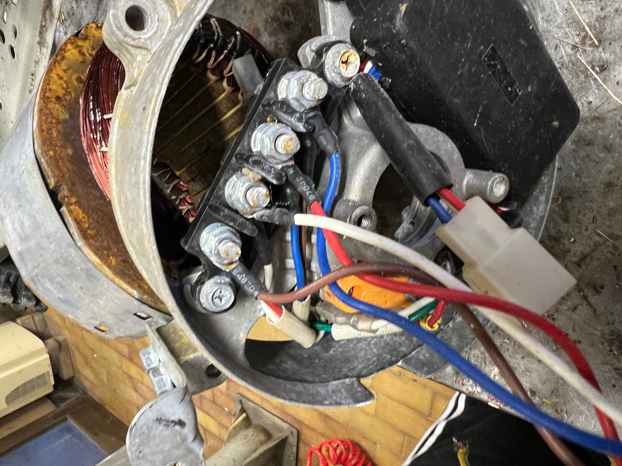 Ho smontato tutto e volevo capire se era partita lo statore, sapete dirmi come si misurano gli avvolgimenti? sia in resistenza e che tensione dovrei avere? Poi ho anche un regolatore di tensione che mi vanno 4 fili agli avvolgimenti, vi allego delle foto.