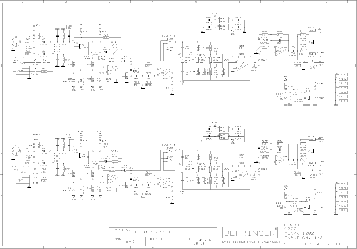 vi chiedo aiuto sullo schema del mixer audio Behringer Xenyx 1202.