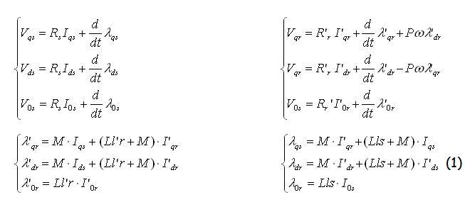 Come primo passo si è costruito un modello del motore asincrono in ambiente Simulink. Si è scelto di utilizzare la trasformazione di coordinate nel riferimento stazionario. Le equazioni della macchina asincrona in questo caso risultano essere :